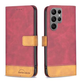 Για Samsung Galaxy S23 Ultra 5G BF10 χρώμα μπλοκ μαγνητικό Flip δερμάτινη θήκη τηλεφώνου (κόκκινο)