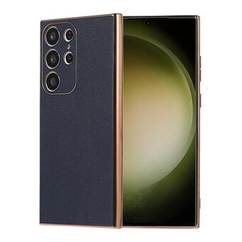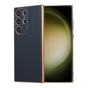 For Samsung Galaxy S23 Ultra 5G Genuine Leather Luolai Series Nano Plating Phone Case(Dark Blue)