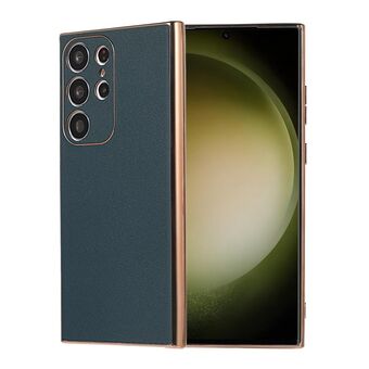 For Samsung Galaxy S23 Ultra 5G Genuine Leather Xiaoya Series Nano Plating Phone Case(Dark Green)