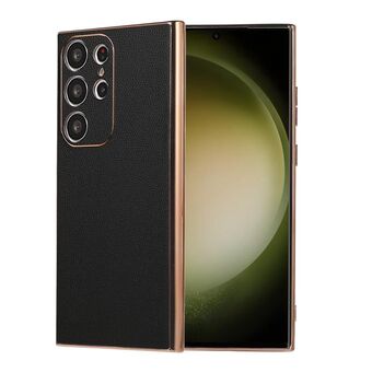 For Samsung Galaxy S23 Ultra 5G Genuine Leather Luolai Series Nano Plating Phone Case(Black)