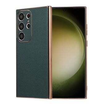 For Samsung Galaxy S23 Ultra 5G Genuine Leather Luolai Series Nano Plating Phone Case(Dark Green)