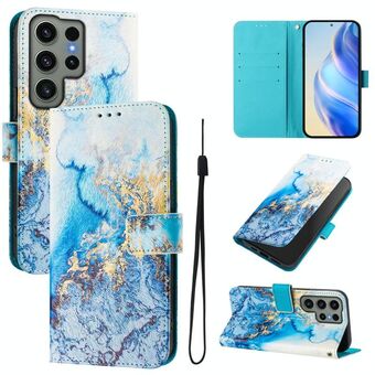For Samsung Galaxy S23 Ultra 5G Art Colored Drawing Pattern Leather Phone Case(Ocean marble)