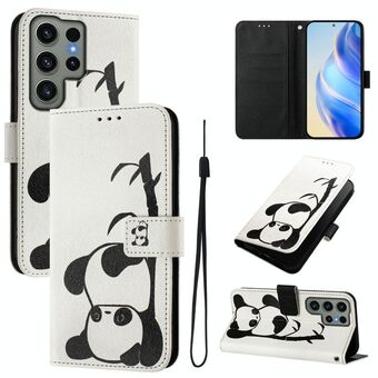 For Samsung Galaxy S23 Ultra 5G Art Colored Drawing Pattern Leather Phone Case(Panda)
