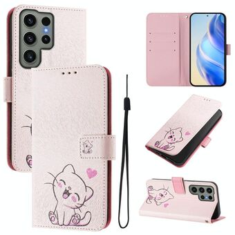 For Samsung Galaxy S23 Ultra 5G Art Colored Drawing Pattern Leather Phone Case(Cute cat)