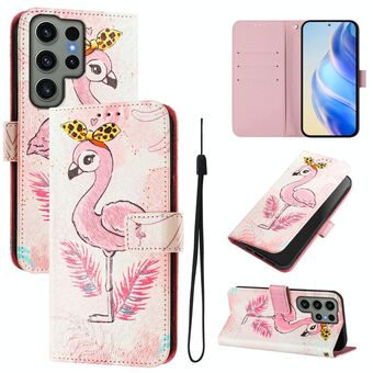 For Samsung Galaxy S23 Ultra 5G Art Colored Drawing Pattern Leather Phone Case(Flamingo)