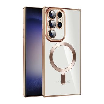 For Samsung Galaxy S23 Ultra 5G CD Texture Plating TPU MagSafe Phone Case with Lens Film(Pink)