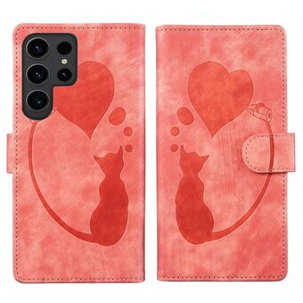 For Samsung Galaxy S23 Ultra 5G Pen Heart Cat Embossed Leather Phone Case(Orange)