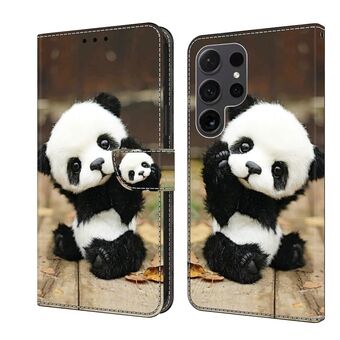 For Samsung Galaxy S23 Ultra 5G Crystal Painted Leather Phone case(Panda)