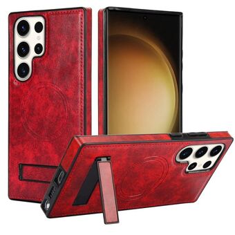 For Samsung Galaxy S23 Ultra 5G Retro Leather Invisible Stand MagSafe Phone Case(Red)