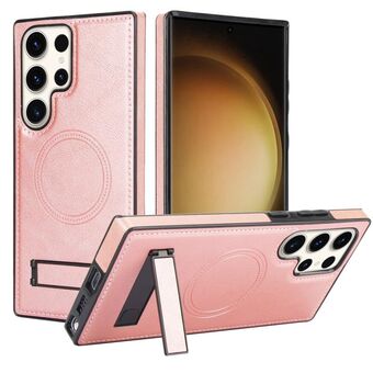 For Samsung Galaxy S23 Ultra 5G Retro Leather Invisible Stand MagSafe Phone Case(Rose Gold)