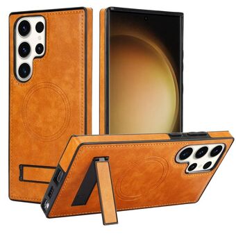 For Samsung Galaxy S23 Ultra 5G Retro Leather Invisible Stand MagSafe Phone Case(Brown)