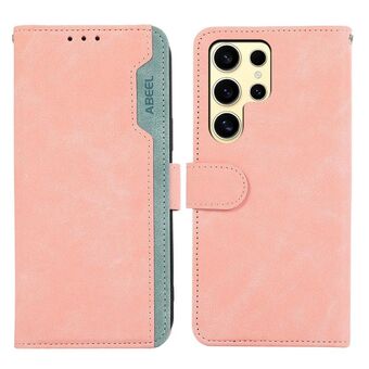 For Samsung Galaxy S23 Ultra 5G ABEEL Color Block Magnetic RFID Leather Phone Case(Pink-Cyan)