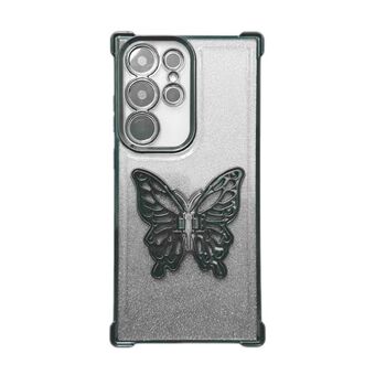 For Samsung Galaxy S23 Ultra 5G Electroplated Glitter 3D Butterfly Four-corner Shockproof TPU Phone Case(Gradient Black)