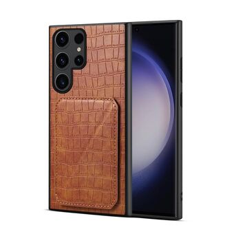 For Samsung Galaxy S23 Ultra 5G Denior Crocodile Texture Holder Electroplating Phone Case(Brown) (Denior)