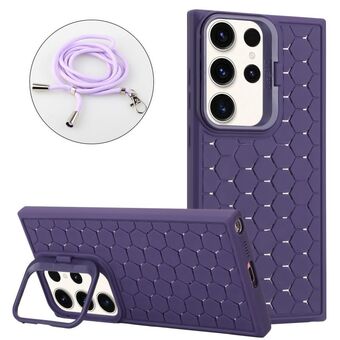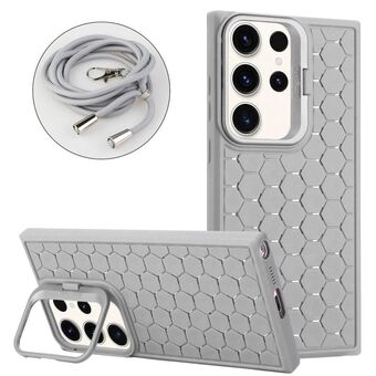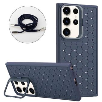 Θήκη τηλεφώνου Samsung Galaxy S23 Ultra 5G με βάση MagSafe και θηλιάκι, με σχέδιο κυψελοειδούς ακτινοβολίας φακού (Μπλε)