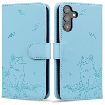 For Samsung Galaxy S24+ 5G Cute Cat Embossed Leather Phone Case(Sky Blue)