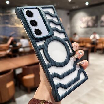 For Samsung Galaxy S24 5G Borderless Carbon Fiber Lens Protection Bracket MagSafe Phone Case(Blue)