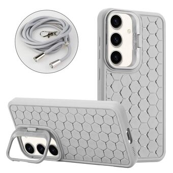 For Samsung Galaxy S24 5G Honeycomb Radiating Lens Holder Magsafe Phone Case with Lanyard(Grey)