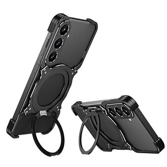 For Samsung Galaxy S24 5G Mechanical Arm Borderless MagSafe Holder Metal Phone Case(Black Silver)