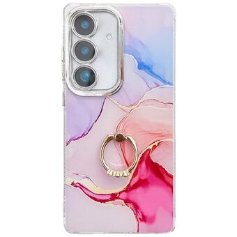 Θήκη τηλεφώνου με δακτύλιο για Samsung Galaxy S24 5G, επιχρυσωμένη με υφή μαρμάρου (Χρυσλό-Λευκό S1)