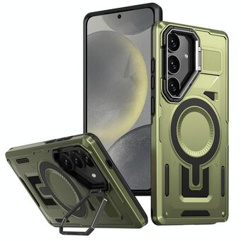 Θήκη κινητού τηλεφώνου Samsung Galaxy S24 5G Shield Hollow Frame Holder MagSafe (Χακί Πράσινο)