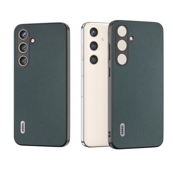 For Samsung Galaxy S24 5G ABEEL Genuine Leather Elegant Black Edge Phone Case(Green)