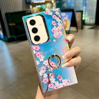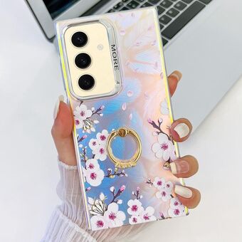 For Samsung Galaxy S24 5G Electroplating Laser Flower Ring Holder TPU Phone Case(Plum Blossom AH18)