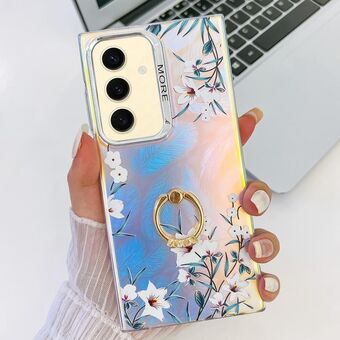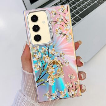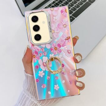 For Samsung Galaxy S24 5G Electroplating Laser Flower Ring Holder TPU Phone Case(Flower AH6)