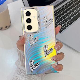For Samsung Galaxy S24 5G Electroplating 4-Heart Laser Texture TPU Phone Case(CD Stripes)