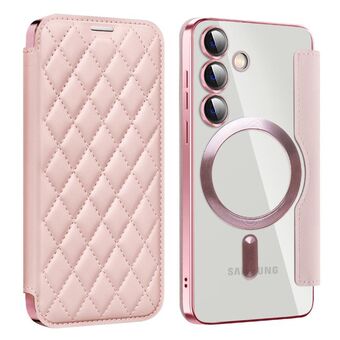 For Samsung Galaxy S24 5G Shield MagSafe RFID Anti-theft Rhombus Leather Phone Case(Pink)
