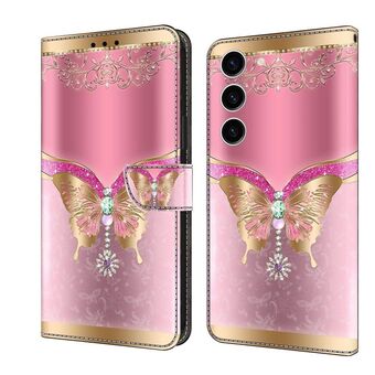 For Samsung Galaxy S24 5G Crystal 3D Shockproof Protective Leather Phone Case(Pink Diamond Butterfly)