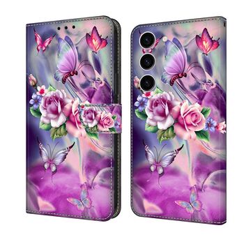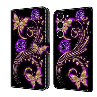 For Samsung Galaxy S24 5G Crystal 3D Shockproof Protective Leather Phone Case(Purple Flower Butterfly)
