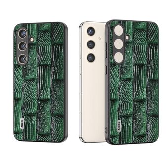 For Samsung Galaxy S24 5G ABEEL Genuine Leather + PC Litchi Texture Phone Case(Green)
