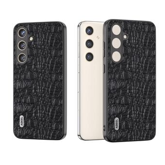 For Samsung Galaxy S24 5G ABEEL Genuine Leather + PC Litchi Texture Phone Case(Black)