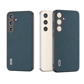 For Samsung Galaxy S24 5G ABEEL Genuine Leather + PC Litchi Texture Phone Case(Blue)
