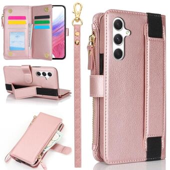 For Samsung Galaxy S24 5G Wristband Holder Zipper Purse RFID Leather Phone Case(Rose Gold)