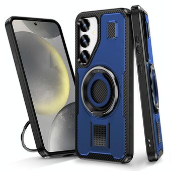 For Samsung Galaxy S24 5G Ring Holder Carbon Fiber PC Hybrid TPU Phone Case(Blue)