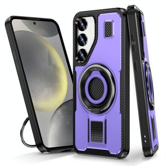For Samsung Galaxy S24 5G Ring Holder Carbon Fiber PC Hybrid TPU Phone Case(Purple)