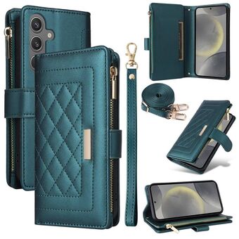 For Samsung Galaxy S24 5G Crossbody Zipper Wallet Rhombus Leather Phone Case(Green)