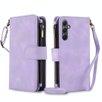 For Samsung Galaxy S24 5G Dream 9-Card Zipper Wallet RFID Leather Phone Case with Lanyard(Purple)