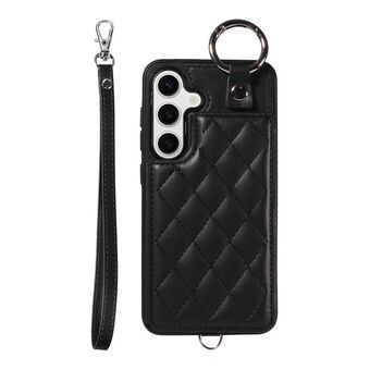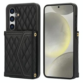 For Samsung Galaxy S24 5G Splicing Rhombic Texture Card Bag Phone Case with Long Lanyard(Black)