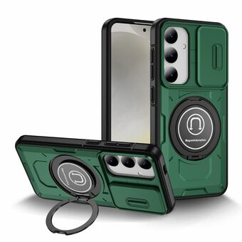 For Samsung Galaxy S24 5G Sliding Camshield TPU Hybrid PC Magnetic Holder Phone Case(Dark Green)