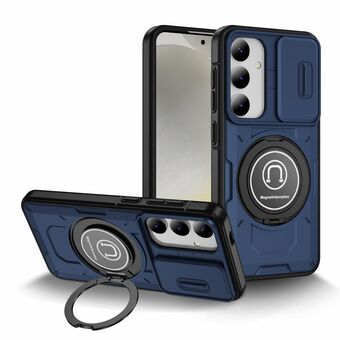 For Samsung Galaxy S24 5G Sliding Camshield TPU Hybrid PC Magnetic Holder Phone Case(Dark Blue)