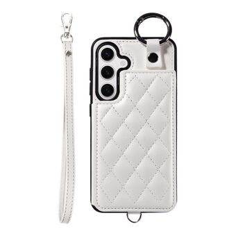 For Samsung Galaxy S24 5G Rhombic Texture Card Bag Phone Case with Short Lanyard(White)