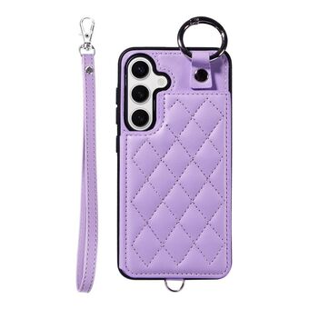 For Samsung Galaxy S24 5G Rhombic Texture Card Bag Phone Case with Short Lanyard(Purple)