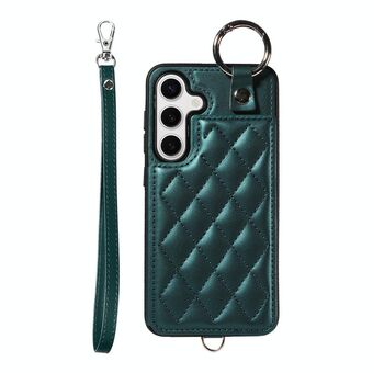 For Samsung Galaxy S24 5G Rhombic Texture Card Bag Phone Case with Short Lanyard(Green)