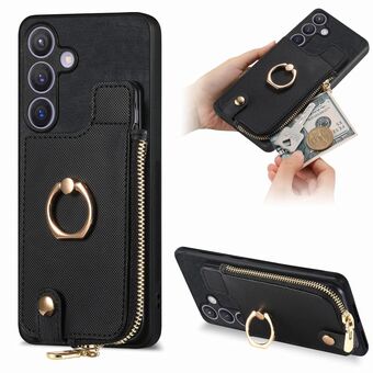 For Samsung Galaxy S24 5G Cross Leather Ring Vertical Zipper Wallet Back Phone Case(Black)