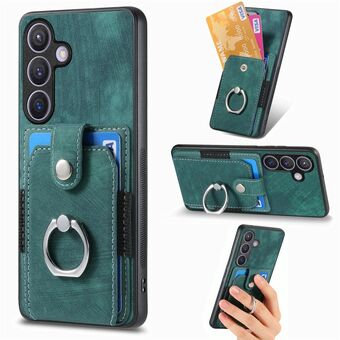 For Samsung Galaxy S24 5G Retro Skin-feel Ring Card Wallet Phone Case(Green)