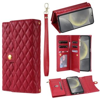 For Samsung Galaxy S24 5G Zipper Multi-Card Wallet Rhombic Leather Phone Case(Red)