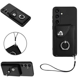 For Samsung Galaxy S24 5G Organ Card Bag Ring Holder PU Phone Case with Lanyard(Black)